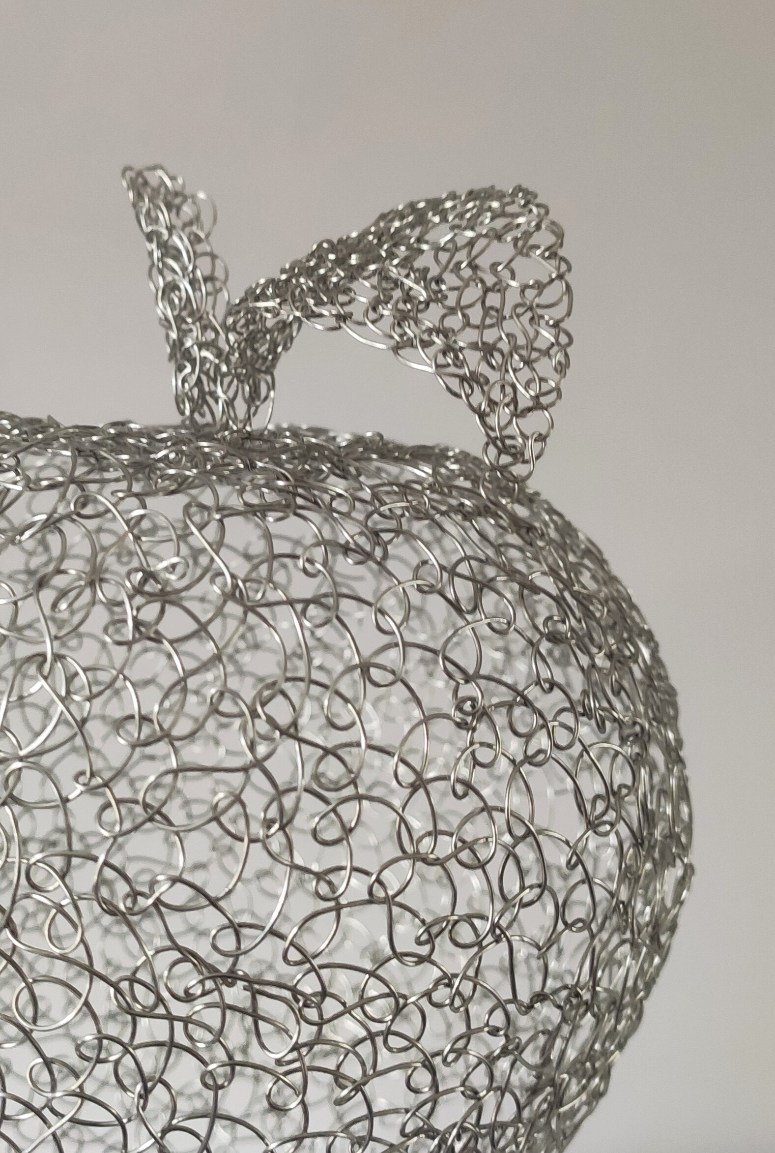 This work explores the tension between object and representation, transforming the familiar into the conceptual. Entirely handwoven from stainless steel wire, it questions perception, materiality, and the boundaries between reality and illusion.